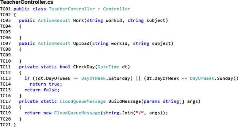 Relevant portions of the solution files are shown in the following code segments. Line numbers in the code segments are included for reference only and include a two-character prefix that denotes the specific file to which the line belongs.